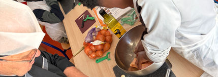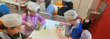 Aujourd’hui, un vent de nouveauté a soufflé dans la maison de Foodie ! Deux nouvelles classes sont venues faire éveiller les papilles de Foodie, mascotte du programme, qui trépignait d’impatience à l’idée de gouter à leurs créations culinaires. Au menu : un couscous et des tacos revisités, de quoi régaler les plus petits (et les grands aussi). Après une demi-journée à cuisinier, les enfants ont participé à des ateliers ludiques sur l'équilibre alimentaire et la saisonnalité des fruits et légumes. Ces apprentissages précieux les aideront à faire des choix éclairés en matière de nutrition et de bien-être.